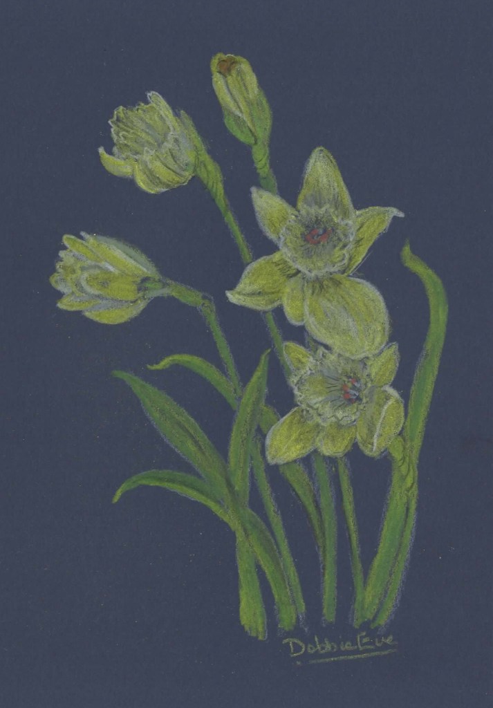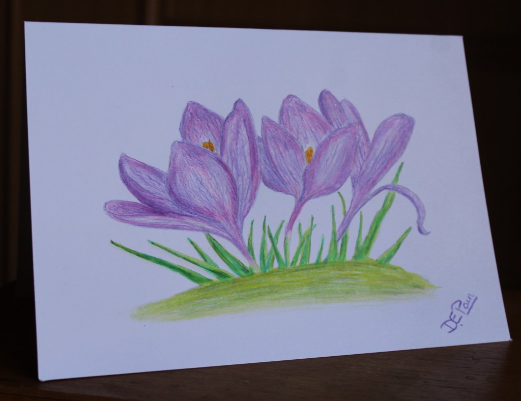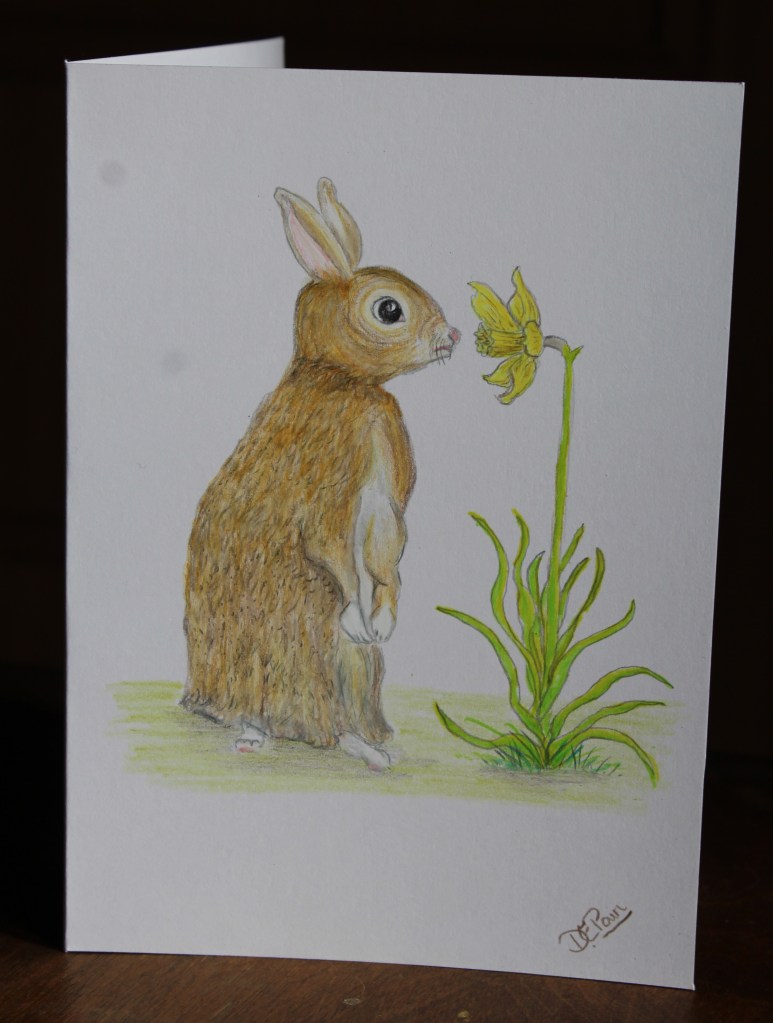Thoughts of Spring is an original signed card with no prints made so is totally unique. I have used oil based coloured pencils and have sprayed the card with fixative. It is blank inside for your own message and comes with an envelope. It would make an ideal special card to send at Easter.