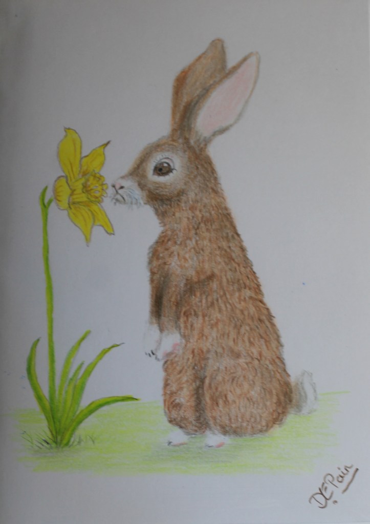Rabbit Smelling Daffodil