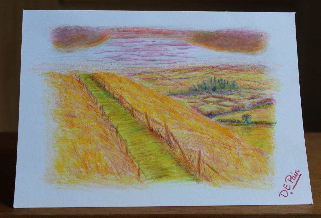 This is an original signed card, with no prints made so is totally unique. I have used oil based coloured pencils and have sprayed the card with fixative. It is blank inside for your own message and comes with an envelope. This card is based on a children’s book I illustrated for the author, Lazarus Carpenter, called ‘Pablo the Provider of Pixie Picnic Parcels Packed with Poached Parsnip Pie Products’.