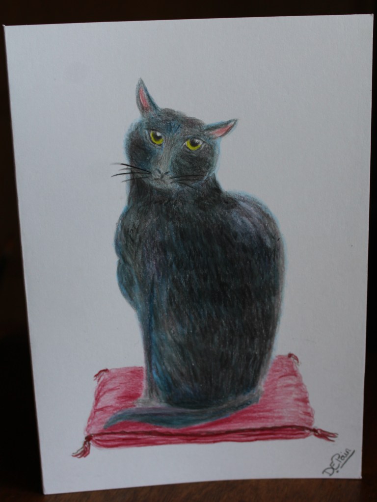 Price: Original now sold but prints available from https://deborah-pain.pixels.com/featured/black-cat-deborah-pain.html