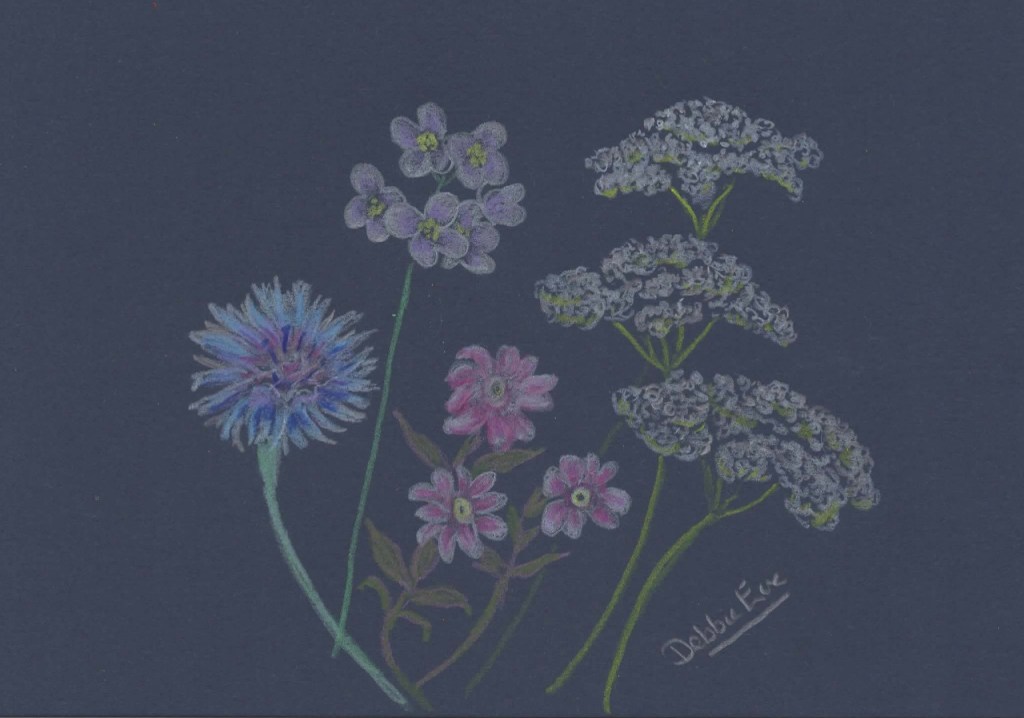 Each card is unique and is the original artwork, not a print, and signed by me. They are 5×7 inches in size on white card, are blank for your own message and comes with an envelope. They are priced at £7 each or 5 for £30 including UK postage, please add £5 for all other destinations. Originals can also be purchased from The Artist and Makers Emporium at Craig y Nos Country Park, SA9 1GL and The Tearooms, Glynneath 1 Pentre Street SA11 5EU at £5 each or two for £8.