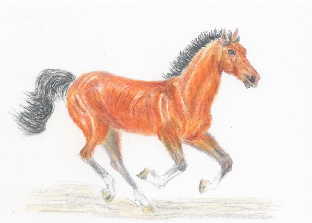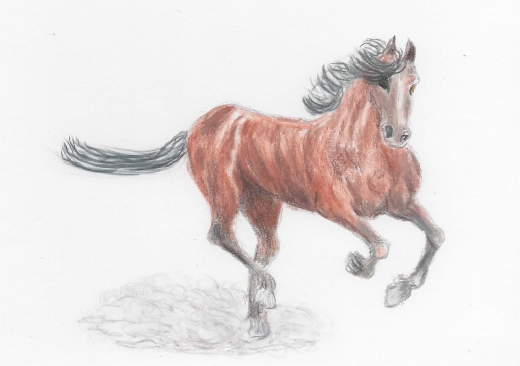 An original pencil drawing of a black horse.