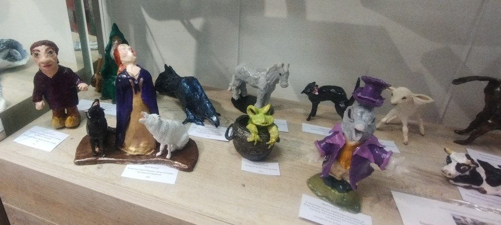 My sculptures are made of either air dry or polymer clay and many are inspired by my illustrations in books written by Lazarus Carpenter. I love creating pictures in various mediums, my favourites being watercolour and coloured pencils.